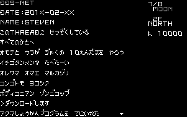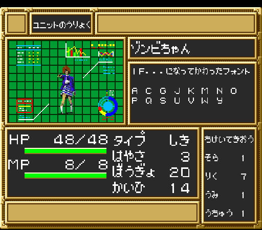 × [PR]上記の広告は3ヶ月以上新規記事投稿のないブログに表示されています。新しい記事を書く事で広告が消えます。 ifの 会話用のフォントを試作 ゲーム中では白と灰の二色を用い凹んでいるというか掠れている風の表現をされているが、 48x48に引き延ばして灰色部分を網掛けにしてみた。 もっと大きく引き延ばして網掛けにした方がよさそう。 網掛けの濃度も要調整。 完成まで幾年かかかりそう。 PR 月齢、月相を表示するtodayプラグインを見つけたので、 e830wをメガテン仕様にしたくてちょっとフォントを作ってみた。 確かめてみたら真1じゃ月相の表示はされないからちょっとした無駄骨。 そのうち真2のフォントをつくろうかと。 で、今回出来上がった物がコチラ 詳しくは中のテキストを。 |